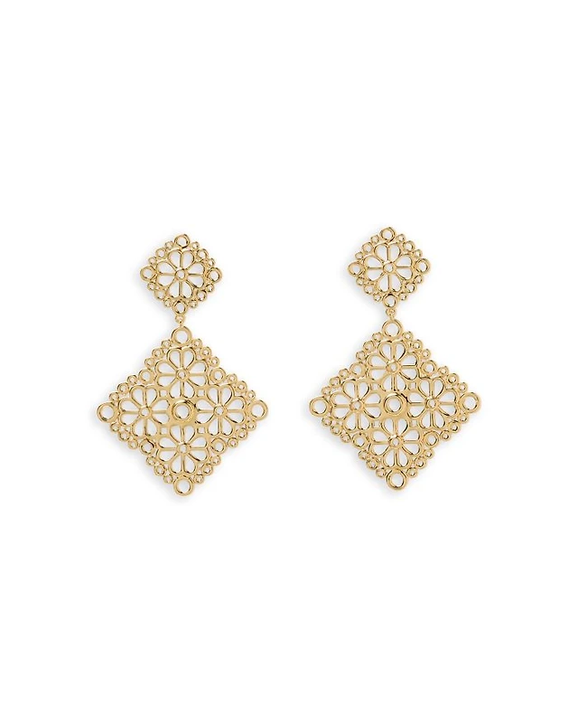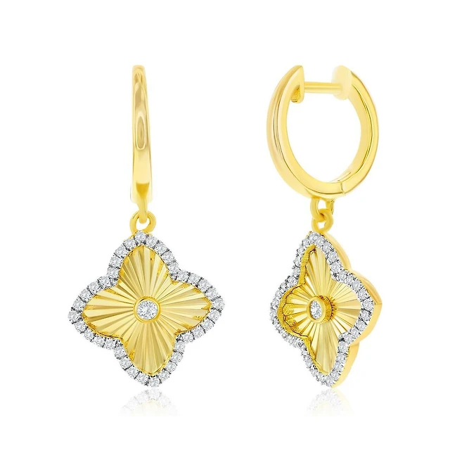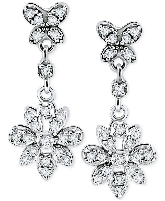 Cubic Zirconia Pave Flower Drop Earrings in 14k Gold-Plated Sterling Silver