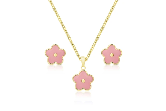 Kids 14K Gold Plated with Colored Cubic Zirconia Accents Flower Stud Earrings