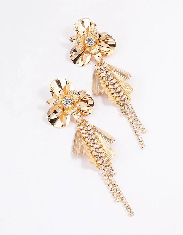 lonna & lilly Gold-Tone Openwork Flower Double Drop Earrings