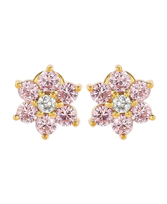 Children's Pink Cubic Zirconia Flower Screwback Stud Earrings in 14k Gold