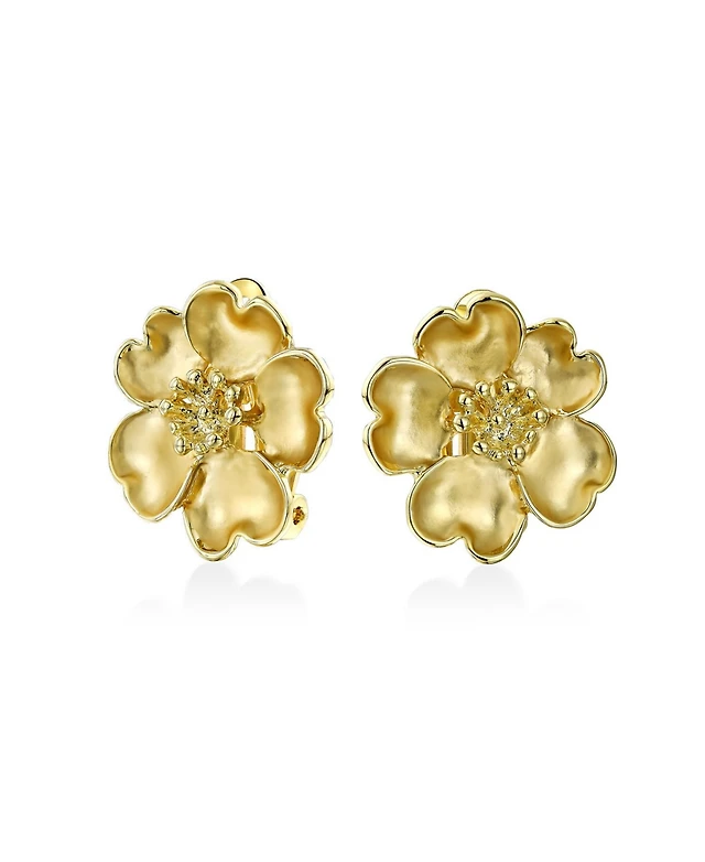 Bling Jewelry Heart Petals Flower Cubic Zirconia Cz Clip On Earrings Non Pierced Ears Matte Gold Plated Brass