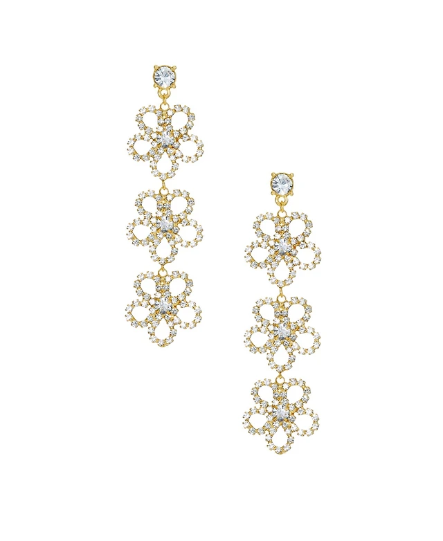 Ettika Flower Power Triple Drop 18K Gold Plated Earrings