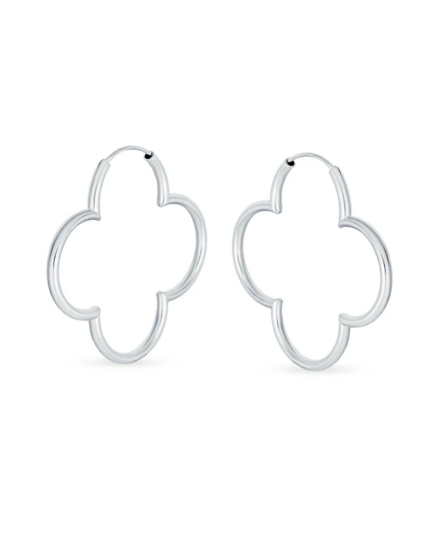 Bling Jewelry Simple Clover Flower Shaped Thin Tube Endless Hoop Earrings Sterling Silver 1.5 Diameter