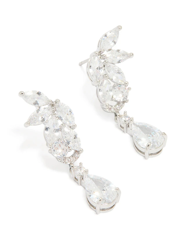 Silver Cubic Zirconia Flower Drop Earrings & Necklace Set