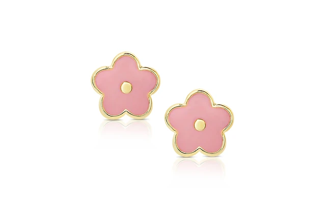 Mother-of-Pearl Flower Stud Earrings 10k Gold