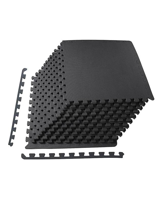Squatz 6-Piece Puzzle Exercise Mat, Eva Foam Tiles, Black