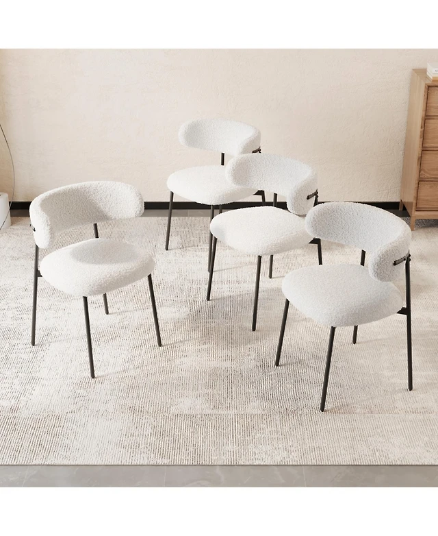 Dyhome Upholstered Fabric Dining Chairs with Black Metal Legs, Modern Curved Backrest Kitchen Chairs, Set of 6