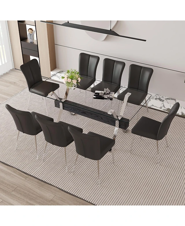 Streamdale Modern Marble Mdf Dining Set 55"x31.4" with 4 Light Gray Linen Chairs