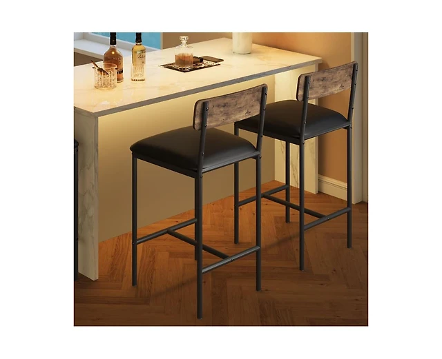 Set of 2 Bar Height Chairs with Solid Rubber Wood Frame & Adjustable Foot Pads