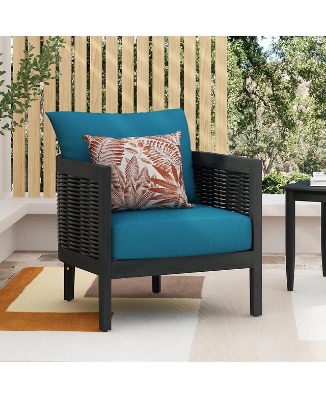 Streamdale Woven Outdoor Lounge Chairs - Wood Frame & Cushions (Set of 2)