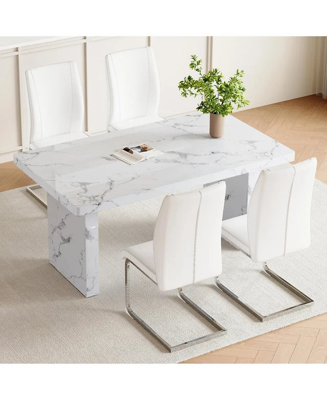 Streamdale Snow Mountain Table & 4 Black Pu Chairs