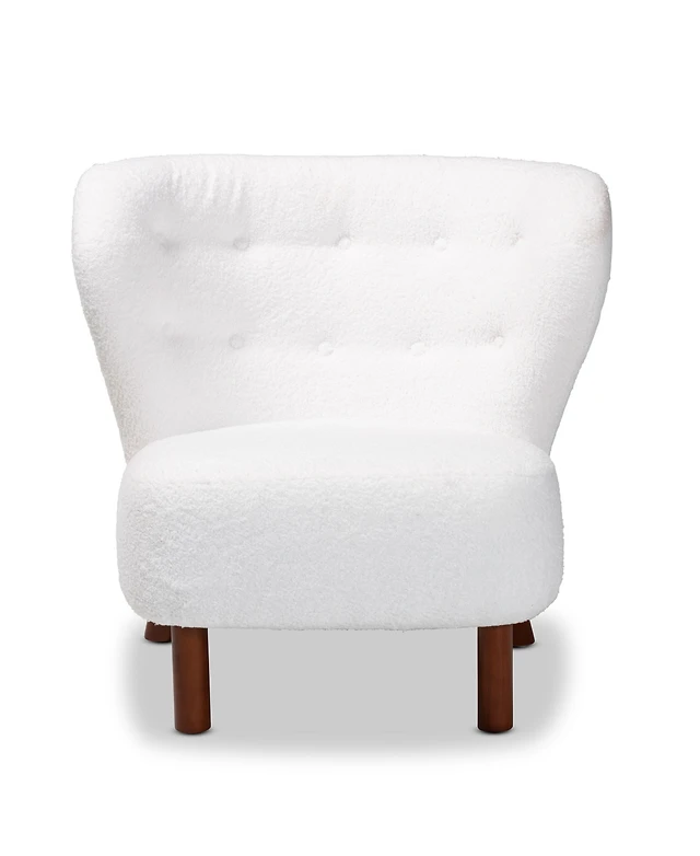 Hudson 39" Linen and Walnut Legs in Mid-Century Button-Tufted Chair