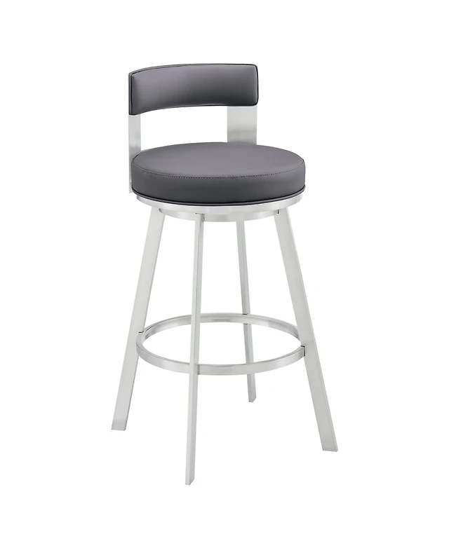 Madrid 30" Bar Height Swivel Gray Artificial leather and Brushed Stainless Steel Stool