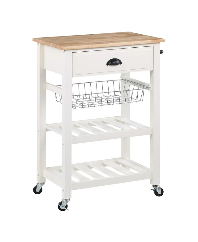 Halifax North America White Kitchen Cart: Stainless Top, Drawer, Towel/Spice Rack, Wheeled