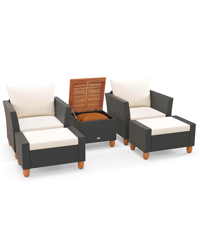 Gymax Set of 5 Furniture Set w/ Storage Table Ottomans Soft Pillows Patio