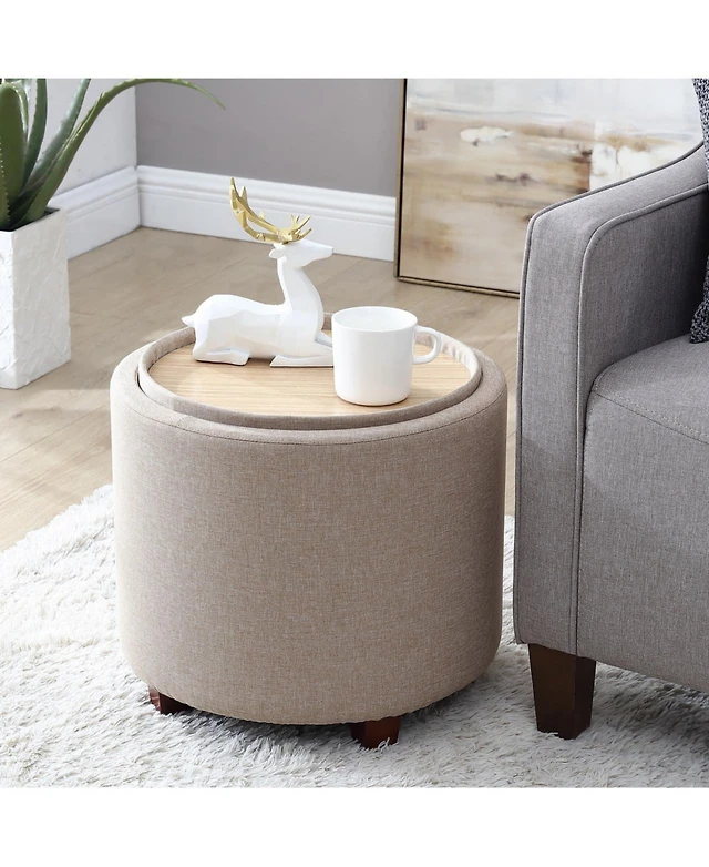 Convenience Concepts 15.75" Faux Linen Round Storage Ottoman with Tray Lid
