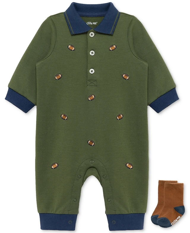 Little Me Baby Boys Football Coverall & Socks, 2 Piece Set
