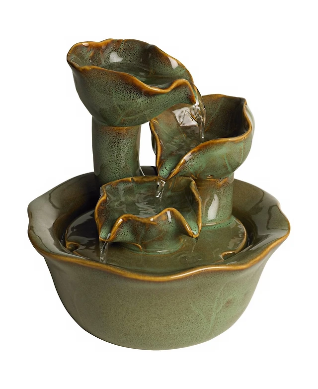 Indoor Home Decorative Glazed Smooth Ceramic Tiered Vessels Tabletop Water Fountain - 10"