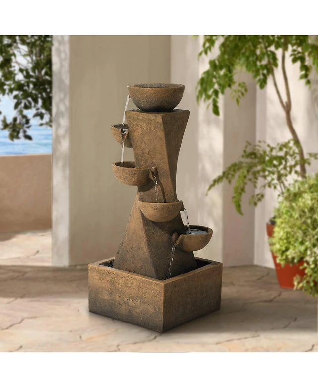 LuxenHome 5-Bowl Multi-Gray Modern Sculpture 26-Inch Tall Resin Fountain with Lights