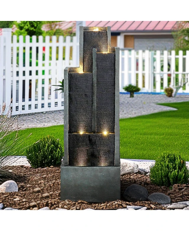 LuxenHome Resin Modern Tiered Patio Fountain with Led Lights