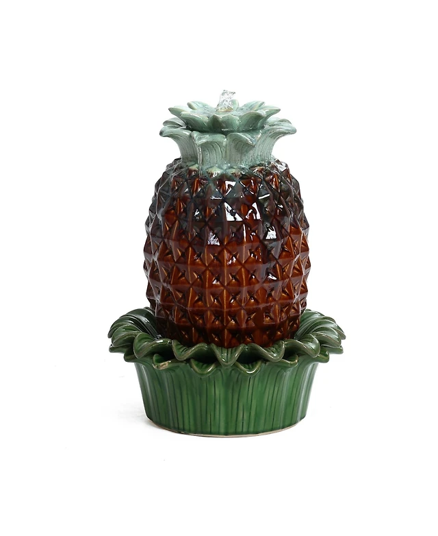 LuxenHome Emerald Ribbed Top with Ivory Bottom 19.88" Tall Resin Fountain with Lights