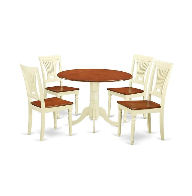 East West Furniture 3 Piece Kitchen Dining Table Set - Linen White Round Dining Table with 2 Linen White Dining Room Chairs with Slatted Back