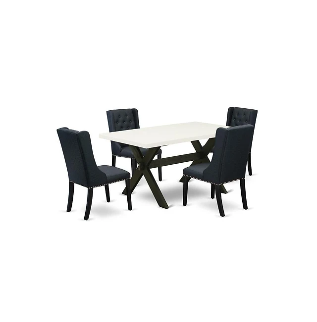 East West Furniture modern dining table set of 2 excellent indoor dining chairs with Linen Fabric Baby Blue color and a gorgeous Square wooden table