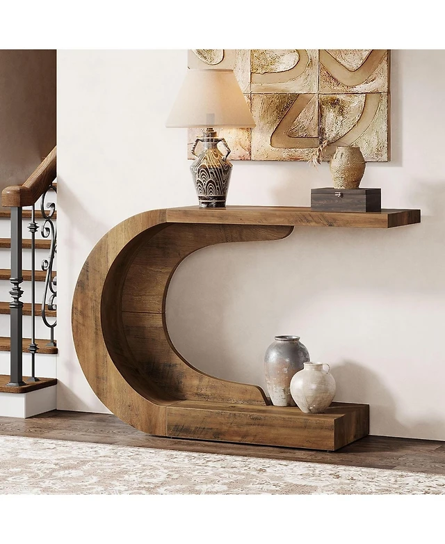Tribe signs 55 inches Console Table with Geometric Base, Farmhouse Hallway Table, Wooden Entryway Table Unique Long Accent Table