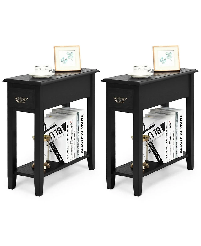 Gymax Set of 2 Nightstand 2 Tier End Bedside Sofa Side Table w/Drawer &Shelf