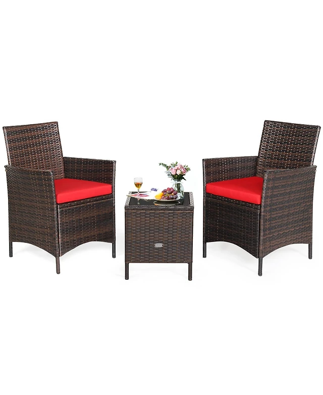 Gymax 3PCS Patio Outdoor Rattan Conversation Set w/ Coffee Table Cushion