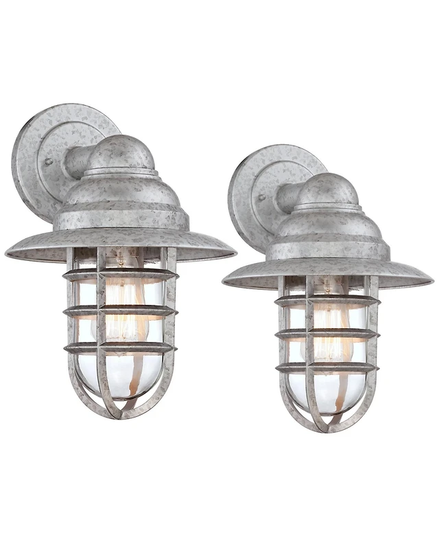 John Timberland Marlowe 13 1/4" High Farmhouse Rustic Hooded Cage Outdoor Wall Light Fixture Mount Porch House Set of 2 Galvanized