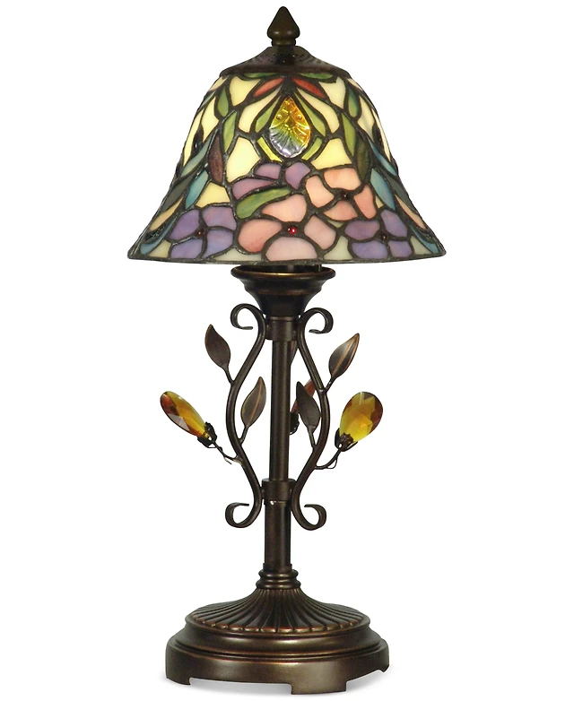Simple Designs Table Lamp with Fabric Shade and Hanging Acrylic Beads