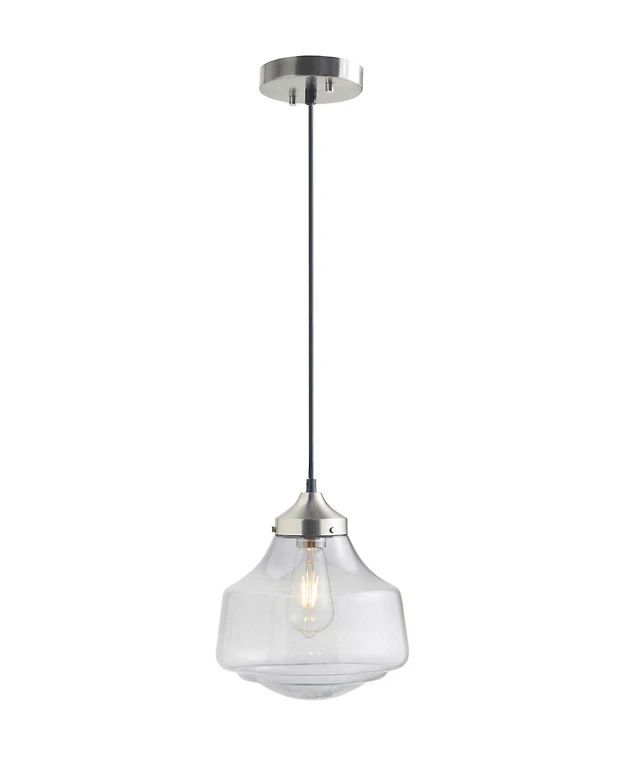 Jonathan Y Matilda 10" 1-Light Industrial Designer Iron/Dimple Glass Dome Led Pendant, Nickel/Clear
