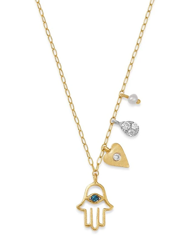 Cultured Freshwater Pearl (7mm) & Diamond (1/7 ct. t.w.) Heart 18" Pendant Necklace in 14k Gold (Also in White Gold)