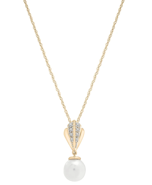 Honora Cultured Freshwater Pearl (8mm) & Diamond (1/8 ct. t.w.) 18" Pendant Necklace 14k Yellow Gold or White