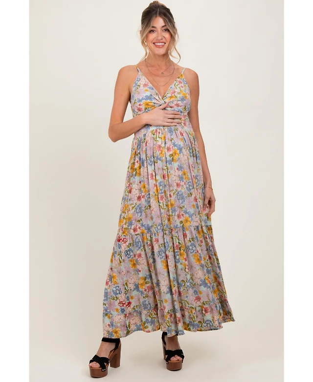 Pinkblush Maternity Mint Green Floral Twist Front Cutout Maxi Dress