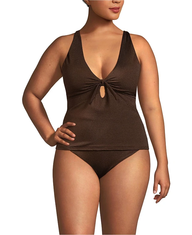 Lands' End Women's Plus Shine Ribbed Tankini Top and High Waisted Bottom Swimsuit Set