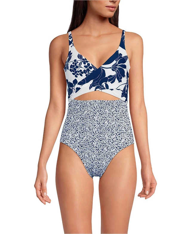Lands' End Petite Wrap Monokini High Leg One Piece Swimsuit