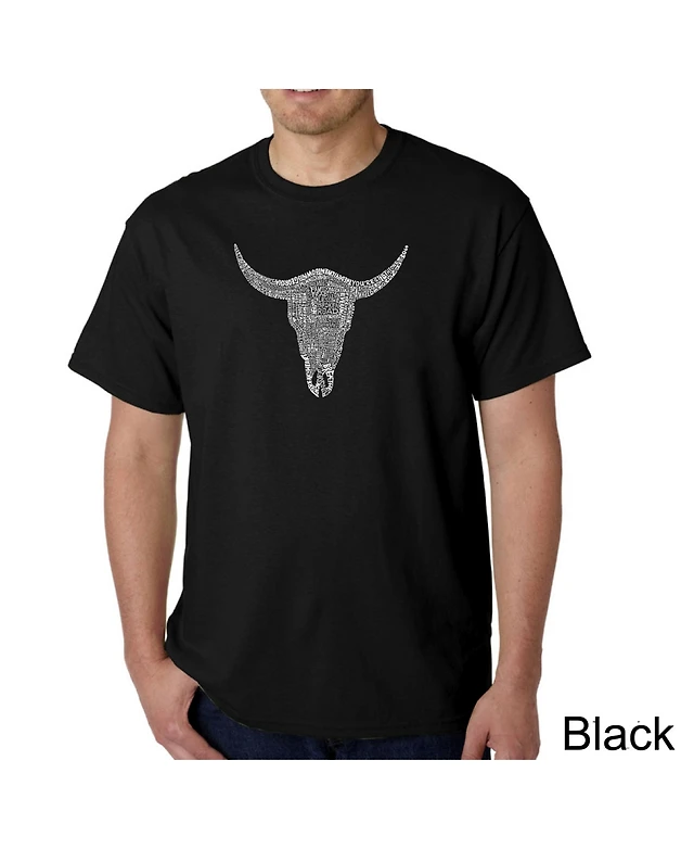 La Pop Art Country Music Cow Skull Men's Raglan Word T-shirt