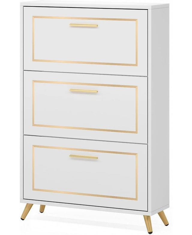 Tribesigns Shoe Storage Cabinet with 3 Flip Drawers, Freestanding Shoes Organizer with Metal Legs for Entryway, Narrow Shoe Rack Cabinets