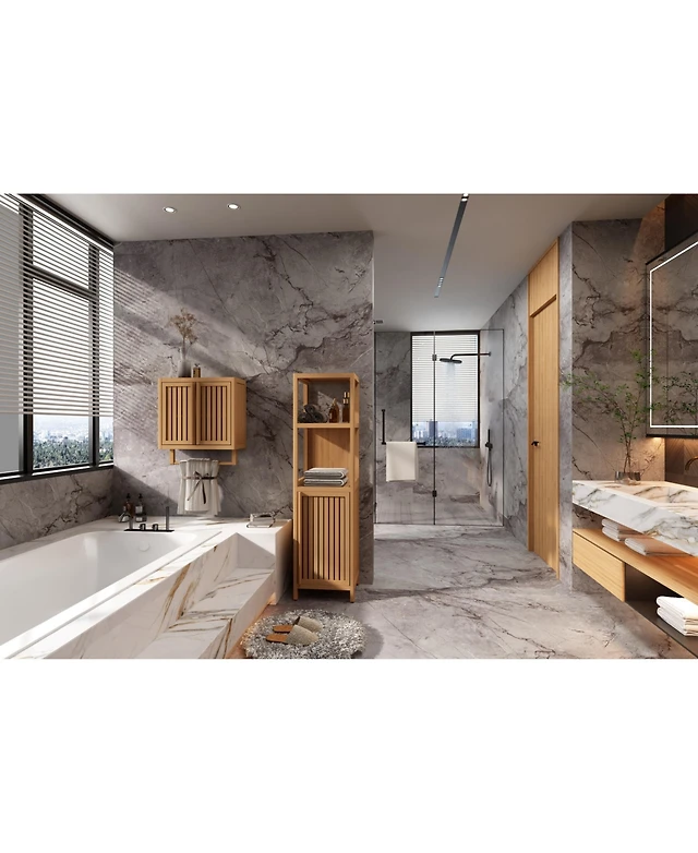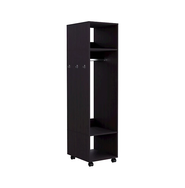 Slickblue Bedroom Storage Cabinet with Louver Doors, Hanging Rod, and Wood Finish