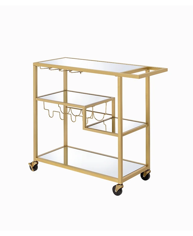 Gouun Outdoor Bar Cart Rolling Wicker Buffet Serving Cart with Tempered Glass Top Storage Cabinet and 8 Hooks