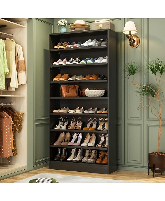 Tribesigns Shoe Cabinet, 9-Tier Shoe Organizer, Heavy Duty Wooden Shoe Storage Cabinet for 40-45 Pairs of Shoes, Freestanding Corner Shoe Rack