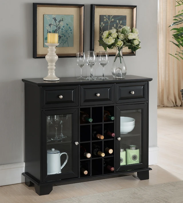 Kings Brand Furniture Jamestown Wood Buffet Server Storage Sideboard Wine Cabinet, Cherry