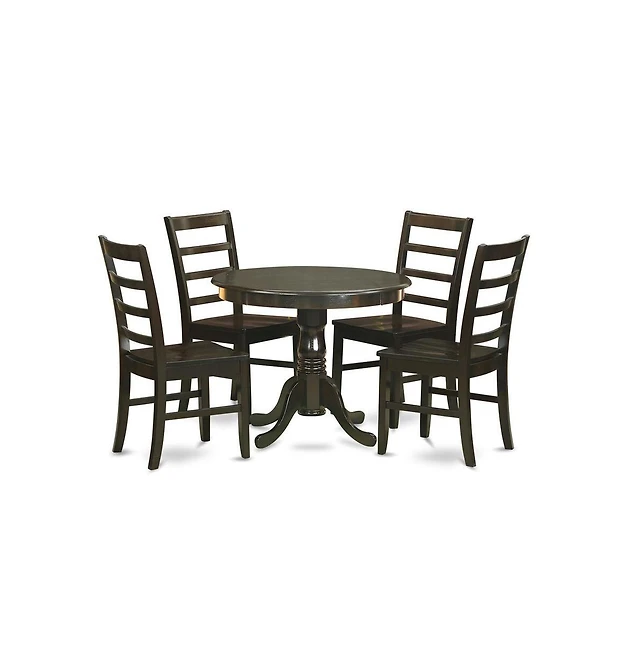 East West Furniture 5 Piece Kitchen Table Set Contains 1 Drop Leaves Dining Room Table and 4 Black Kitchen Chair with Slatted Back