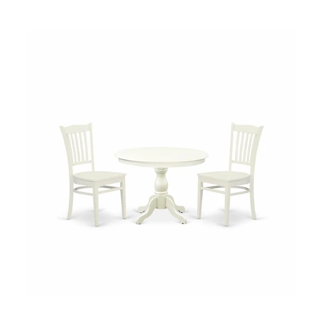 East West Furniture 3 Piece Kitchen Table Set - Linen White Wood Dining Table and 2 Linen White Wooden Dining Chairs with Slatted Back