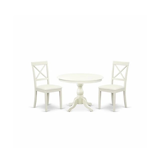 East West Furniture 3 Piece Dining Room Set - Linen White Small Kitchen Table and 2 Linen White Kitchen & Dining Room Chairs with X-Back