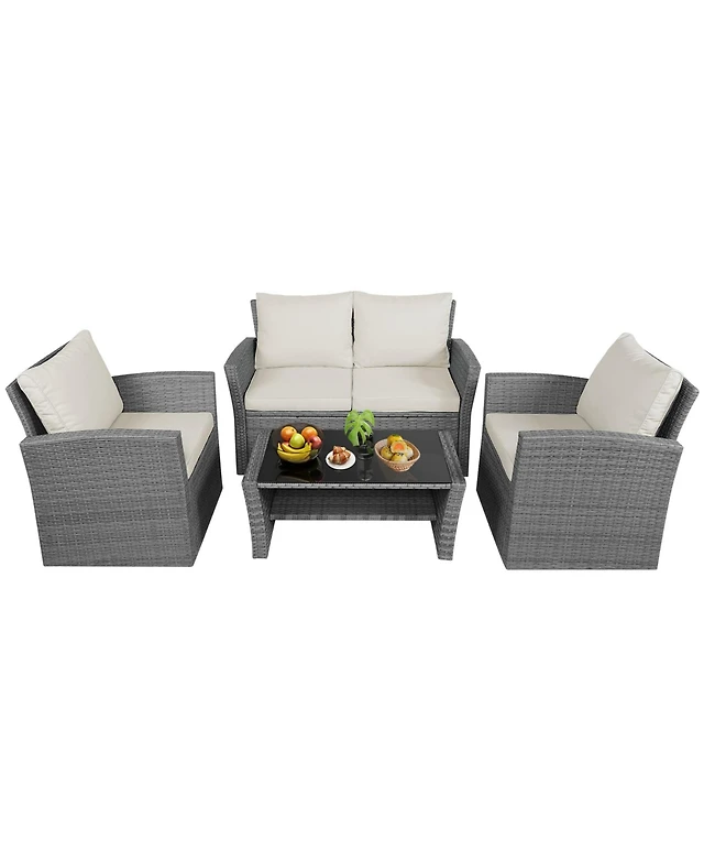 Gymax 4 Piece Outdoor Furniture Set Patio Rattan Conversation Set w/ Cushions
