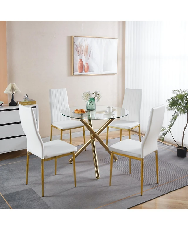 Streamdale Furniture Mid-Century Glass Top Dining Table Set