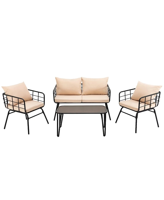 Outsunny 4 Pc Patio Furniture Set w/ Table & Cushion,